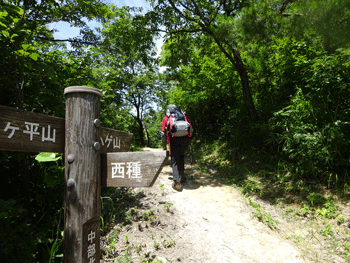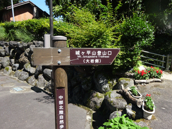 何処の山へ行くかになったが、何となく、城ヶ平山とハゲ山となった。午前10時頃、大岩をスタートしたが、折からの暑さで、ちょっと歩いても、タラタラと汗が滴り落ちてきた。そして、ちょっとのミョウガを期待したが、まだまだ早いようであった。二組二人の登山者が、私達を追い抜いて行ったが、この暑い日に、この山に来るとはと、自分達の事を忘れて驚いてしまった。