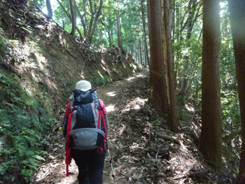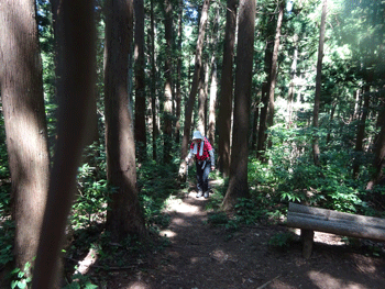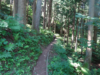 杉林の中の登山道。
