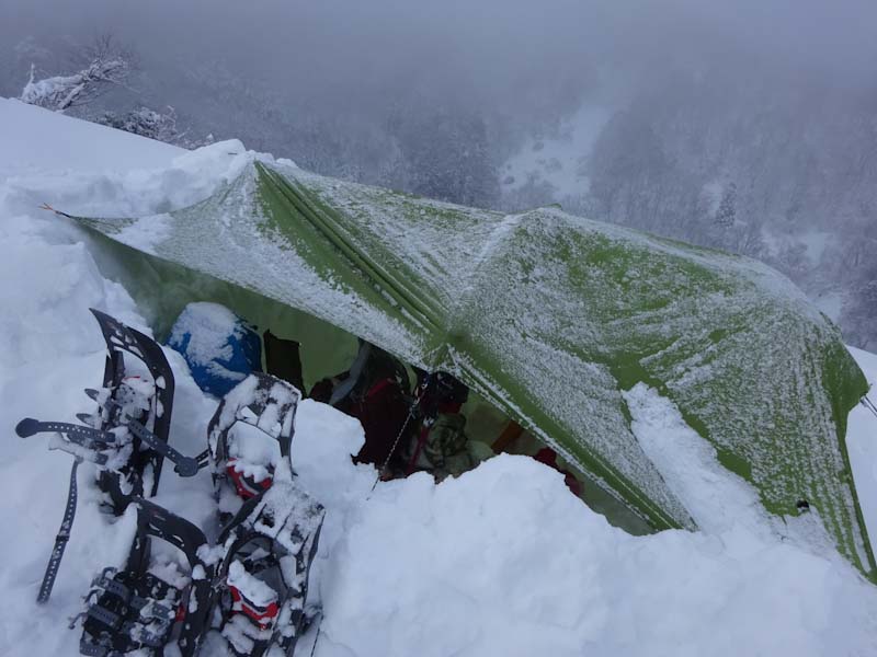 池田氏はハゲ山にいる事は分かっていたが、今日は、城ヶ平山止まりと決め込んでいた。食事をするのにタープを張らなければならない。時たま雪は止むのであるが、寒いし、何もかもが雪に覆いかぶさられてしまうのは辛い。