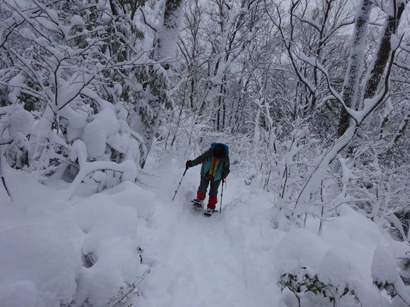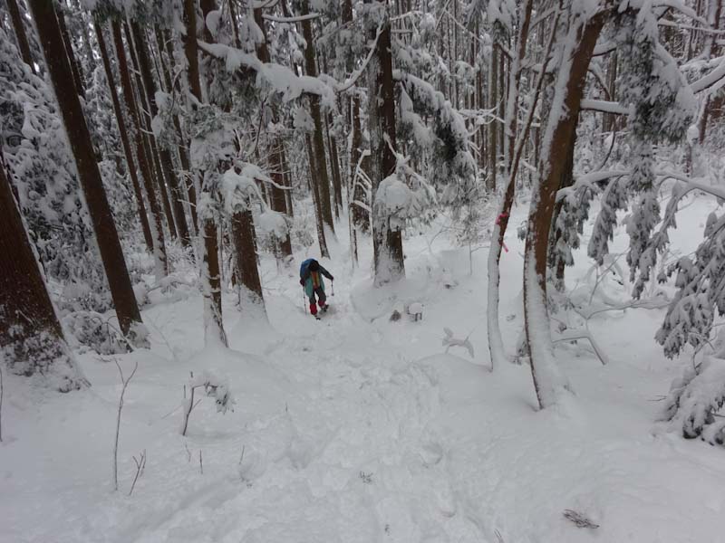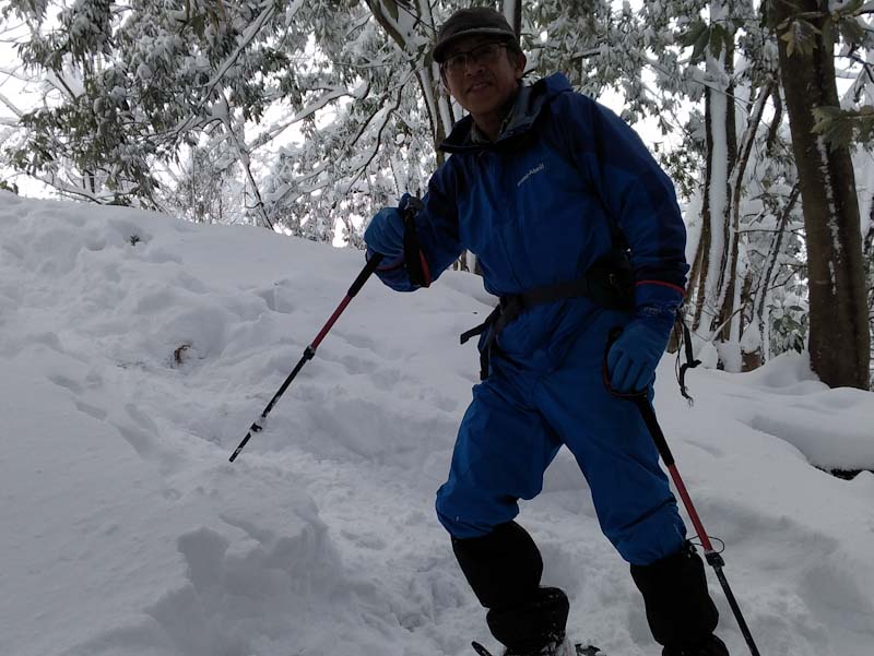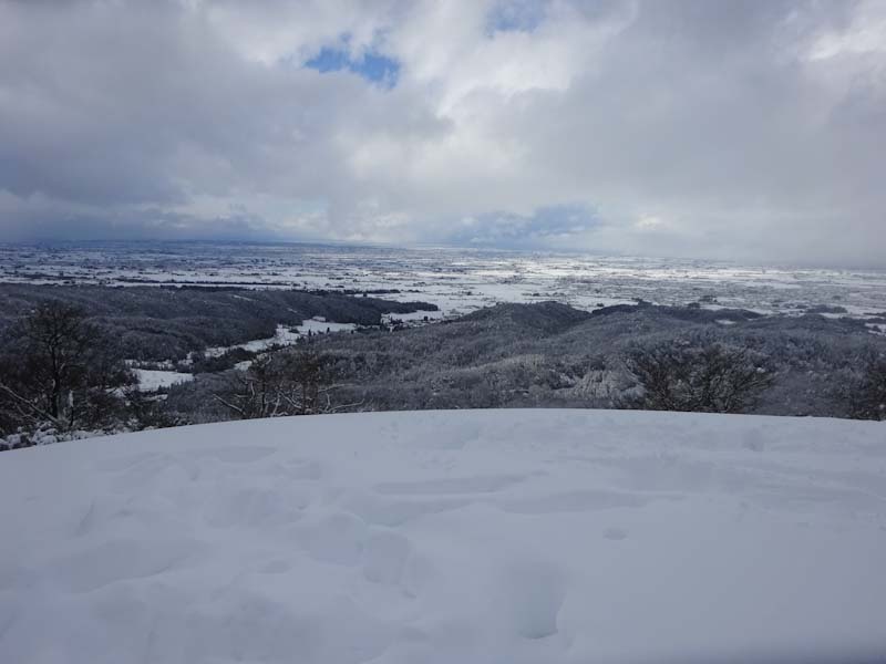 ならばと「城ヶ平山」に変更する。城ヶ平山の山頂は、千石城山の登山口の高さにも及ばない。従って、スノーシューを装着しても、時々地べたが覗けるのである。それでも、高度を上げると、それなりに雪はある。でも、山頂の積雪は少ない。