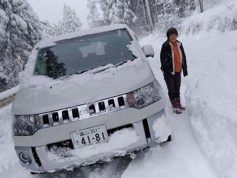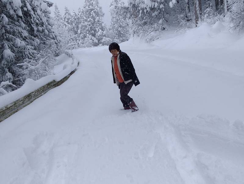 1/1 ちょっと無理かなと思いながら、行けたら4年連続となる「千石城山」を目指した。東種を過ぎ、骨原との分岐の先は、今日の除雪に至っていなく、降りてみると、長靴が隠れるくらいの積雪であった。4WDだから行けるのであろうが、駐車場の事や反転する事などを考えると、行き先を変更せざるを得なかった。