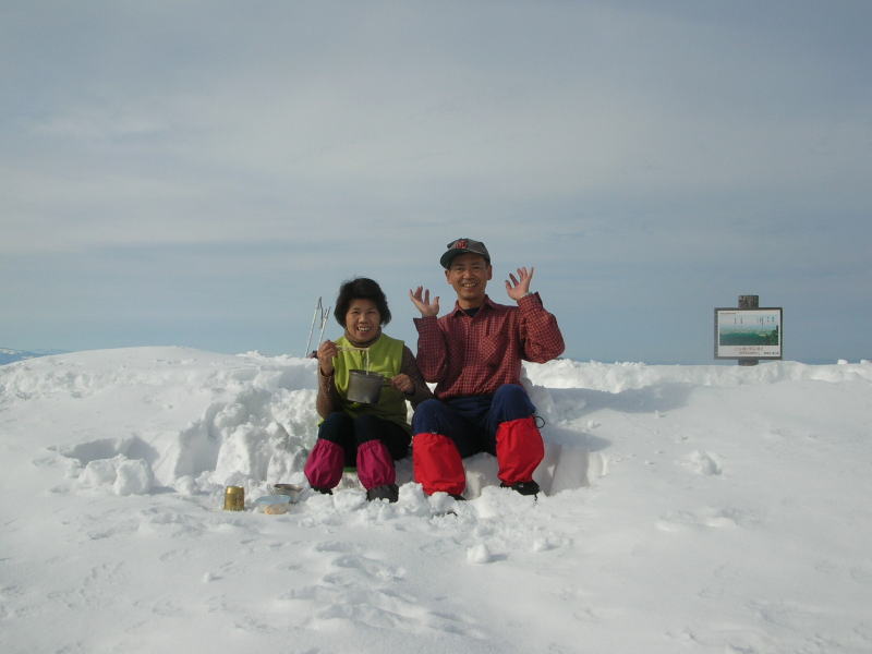 | 新年を城ヶ平山で迎える。 「山ノ神」は乾杯! 元さんは万歳! |