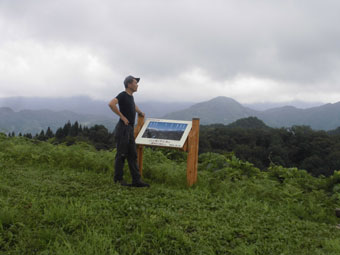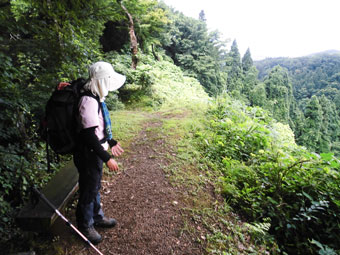 骨原集落からの林道はダートになった。どのような山なのだろうかと心が躍ったが、この道を自転車で来たのなら、それは凄い事だと思わずにはおれなかった。骨原から車で10分程の所で、草に覆われてちょっと見にくかったが、「三角山まで15分」とあった。