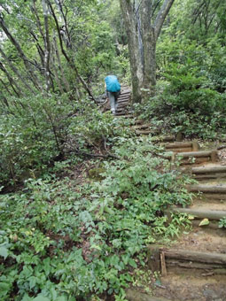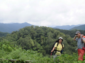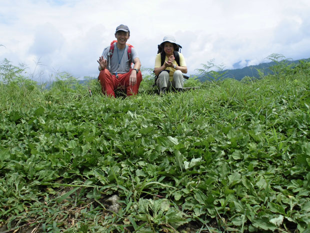ちょっとした坂道を歩くだけで、汗が噴き出した。まるでサウナに入っているような感じであった。ミョウガは、先人に採られた感があり、そのおこぼれを頂く感じであったが、それで充分である。山頂着が正午であったが、左程お腹が空いているわけでもなかったので、カップ麺を二人で分けて食べた。