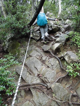時間制限があるものの、今日から孫達は、保育所や育成クラブに出掛けているわけで、何も家にいる事もない。ミョウガに少々興味があった事と、お天気具合と手軽な事を考慮し、城ヶ平山としたのであるが、大岩に着く前から雲行きが怪しく、雨具を纏っての歩きとなった。