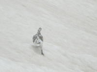 ガスの中に雷鳥が現れた。山に登り始めた頃は、それなりに嬉しかったのであるが、このところは不吉な予感がするだけである。
