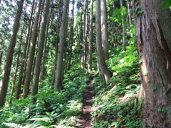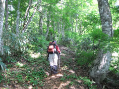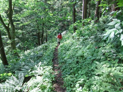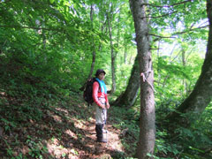 | 下山時も、「山ノ神」の指示の元、山菜をゲットするため、 あちこち歩かされました。 |