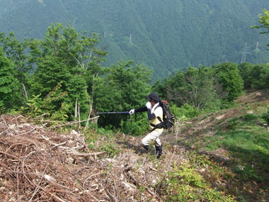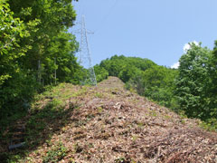 | 何故か、4番目の鉄塔前斜面のブナが、 無残にも切られていました。 |