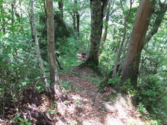 ヤブに入る前の最後の急登。「山ノ神」が、 なかなか上がって来ませんでした。 |