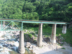 高山線の鉄橋と崩壊したままの 旧道を眺めながら・・・ |
