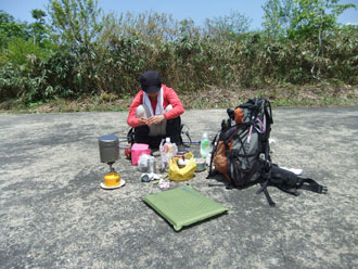 広いヘリーポートで、簡単な食事をしました。 ちょっと、「ブヨ」が煩かったかな! |