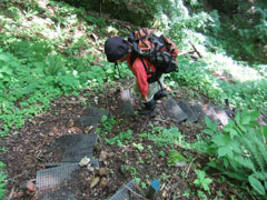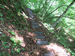 | 始めから急登です。 | このような階段が続きます。 | 時折、なだらかなところも・・・ |