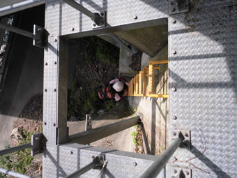 加賀澤トンネル中の非常口階段を降りる。