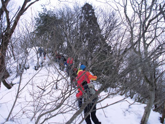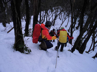 | 609mを過ぎ、10分程進んだ急登箇所を行く。 |