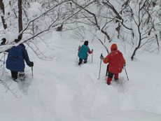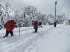 馬場島公園線の除雪隊から、お許し頂いた場所に、車を止めて出発したのは、午前10時15分頃である。笠尻山から千石城山を企画してくれた 「北ちゃん」 には申し訳なかったが、私の遅刻と深雪に、最早諦めながらの山行となった。