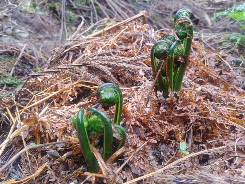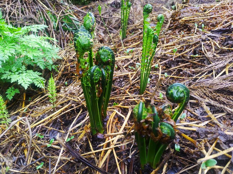 雨降る前に、コゴミ採りを楽しみました。