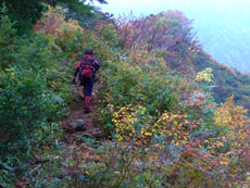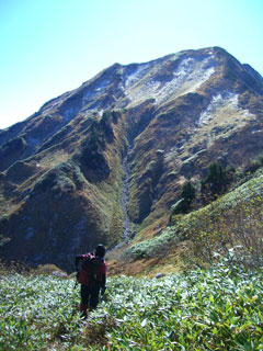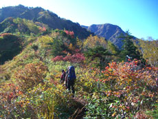毛勝山西北尾根を行く。 |