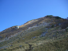 | 毛勝山上部の斜面が見えて来る。 |