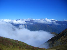 | ウドの頭の奥に真っ白な山が・・・(白馬三山) |