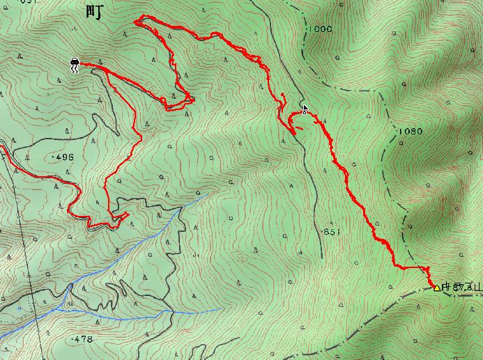 | 車マークは、デボ地点。旗マークは登山口。 |