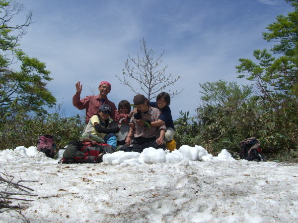 | 山頂には、テーブル・ベンチが造れるような残雪があった。 |