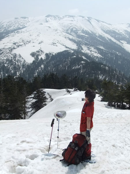 | a.m.9:40 北ノ俣岳が霞んで見えた。 | a.m.9:45 後 10分程で頂上。 | a.m.9:55 寺地山頂上から北ノ俣岳を望む |