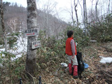 車デボ地点から徒歩25分で登山口に 到着。 長い長い行程が始まった。 |