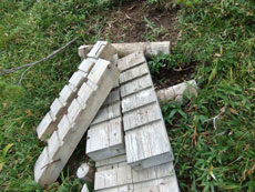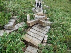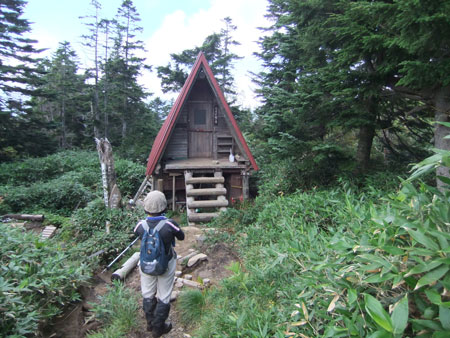 | 整備された避難小屋ですが、この時期の水は、チョロチョロ でした。 そして、別館?には驚きました。 |