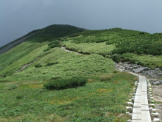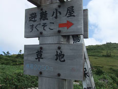 | 北ノ俣岳山頂まで1時間50分です。 | この地点の標高は、2050mです。 | 避難小屋まで2~3分です。 |