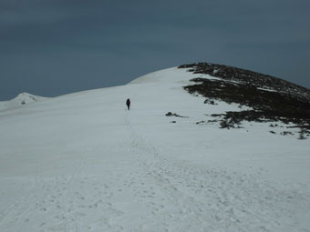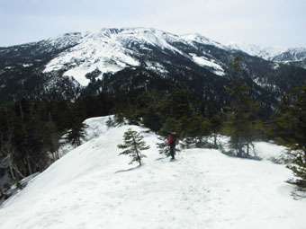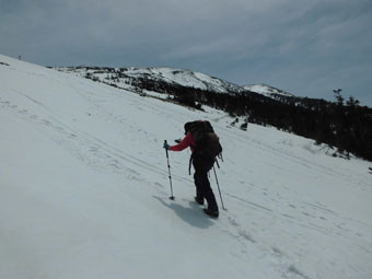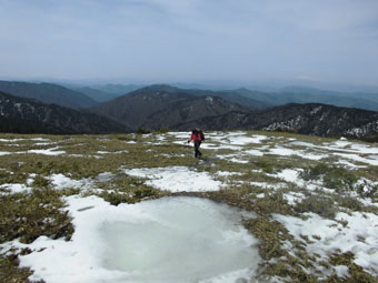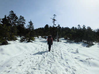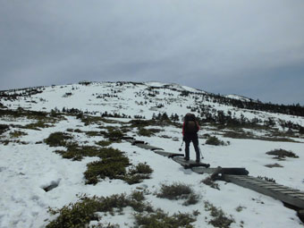 やっぱり少雪。ハイマツの上を歩かなくてはならなくなった。