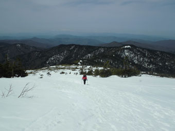 行きは、まだ雪があったが、帰りは、緩んで川のようになった。