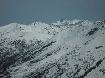 | 右・黒部五郎岳、左・三俣蓮華岳・双六岳辺り、奥に小さく槍ヶ岳。 |