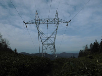 | 20~25分ほどで、鉄塔・送電線に出る。 |