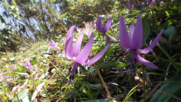登山道に咲くカタクリ。(カタクリのプロムナード)
