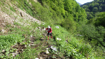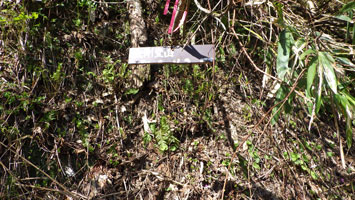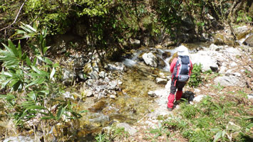 | 沢を渡り休憩場所を探しています。 |
