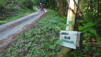 登山口の案内板は壊れています。 |