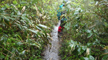 | 撤退の決断をする。 | 雨具が通り全身ずぶ濡れ。 |