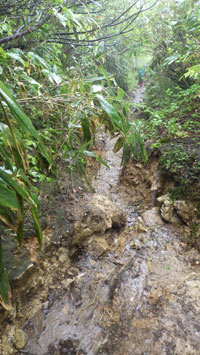 | 4キロ地点。雨も風も強くなって来た。 | 雷鳴が轟き、前進か撤退か悩んだ時。 |