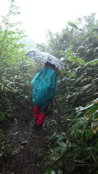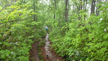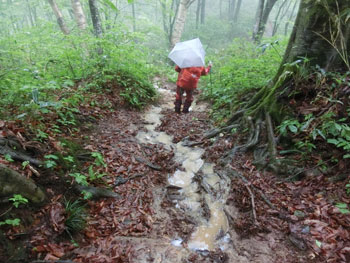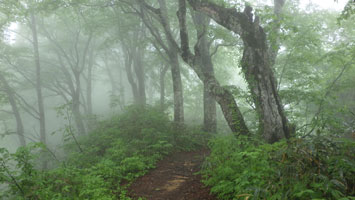 | ブナも神秘的! | 3キロ地点。まだ雨は強くない。 |
