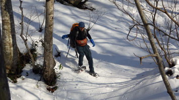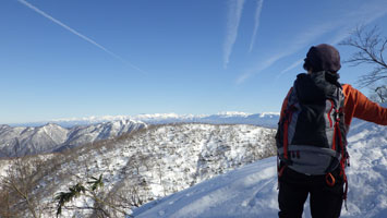 ガリ君との山行は、何故か晴れが多い。(彼は晴れを選んでいるというが・・) 今日もピーカンであった。雪は少ないけれど、小枝はそんなに煩くなかった。そして、私達の歩きに辛抱強く付き合ってくれた。感謝である。いつもなら、途中で「止めた。」 という「山ノ神」であったかもしれないが、今日ばかりは、そのような言葉は言えなかったに違いない。