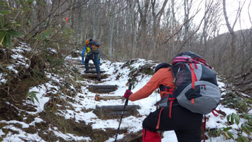 12/16 「明日は何処の山に行くのですか?良ければ一緒したいのですが・・・」 というガリ君からのメッセージに金剛堂山へ一緒する事になった。もちろん、「こちらはロートルそんなに速く歩けない。」 との了承をもらっての同行であった。