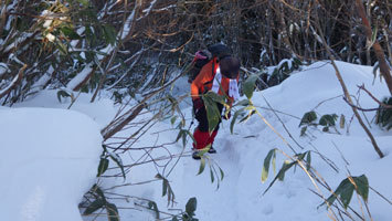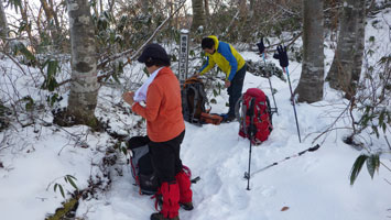 | 片折岳(一服金剛)の雪量が少なく展望がない。 |