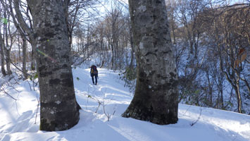 ブナの原生林を行くガリ君。 |