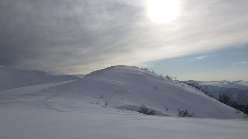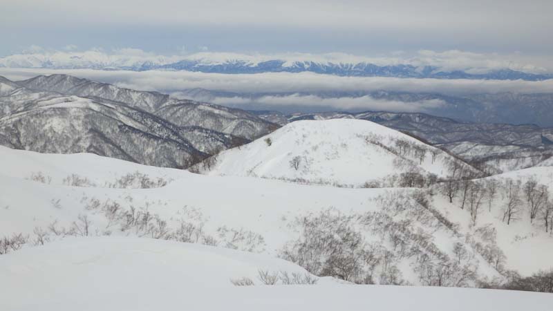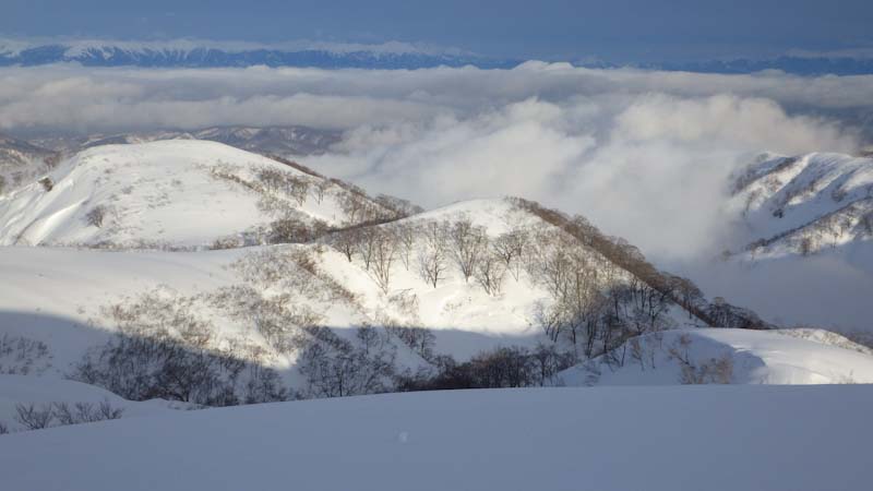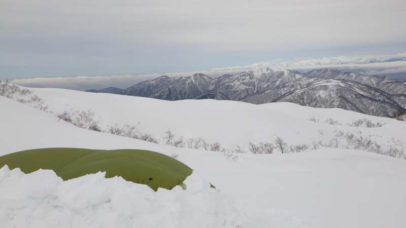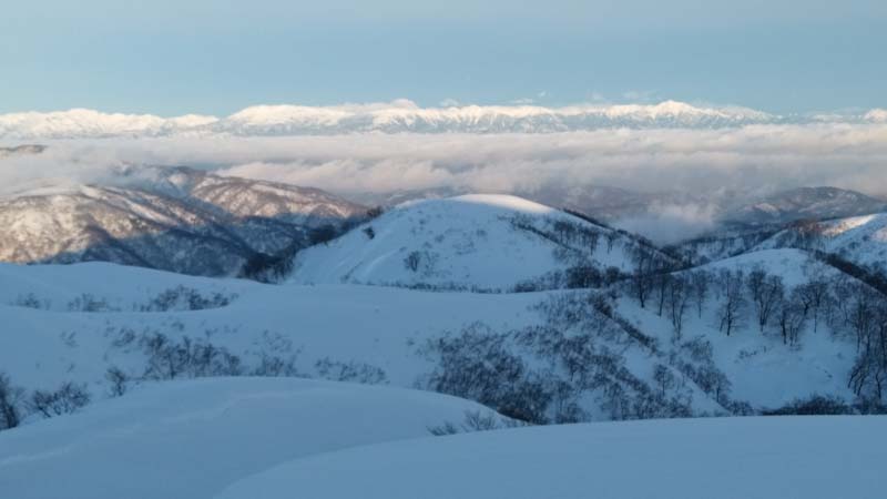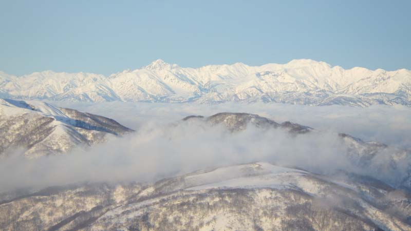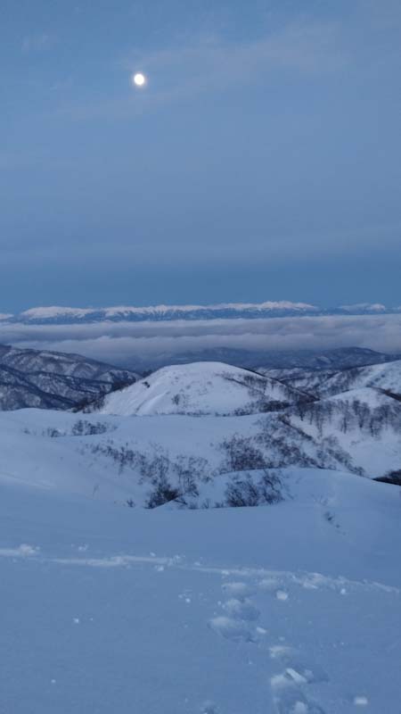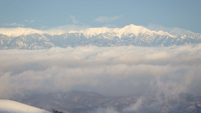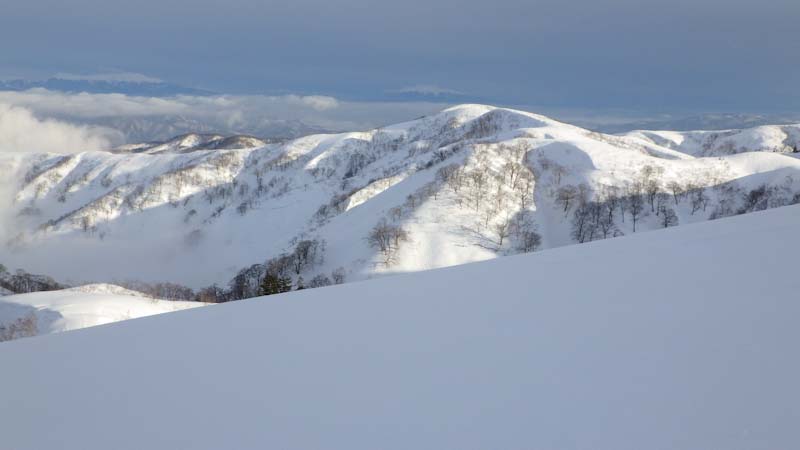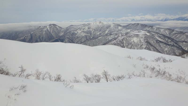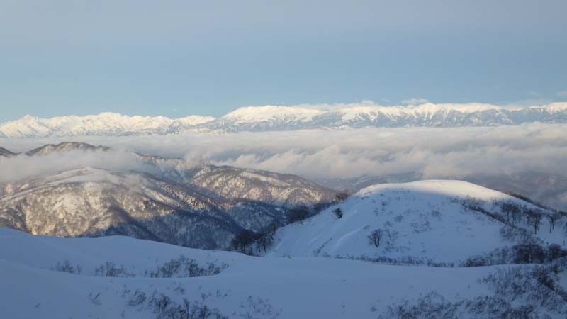 | 3:49 手前から小白木峰・白木峰・仁王山 | 3:45 風は強いもののいい雰囲気になってきました。 |