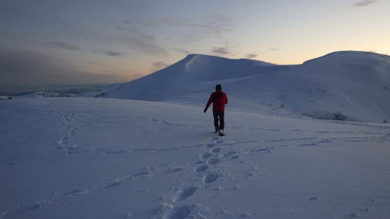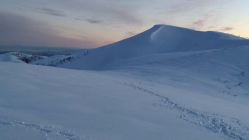 | p.m.5:59 稜線に出て夕陽を背に・・ | p.m.6:02 中金剛に向かって・・・ |