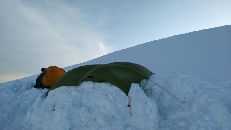 | 今回は古いテントを使用。 | 午後3時くらいからドンドン明るくなって来る。 |