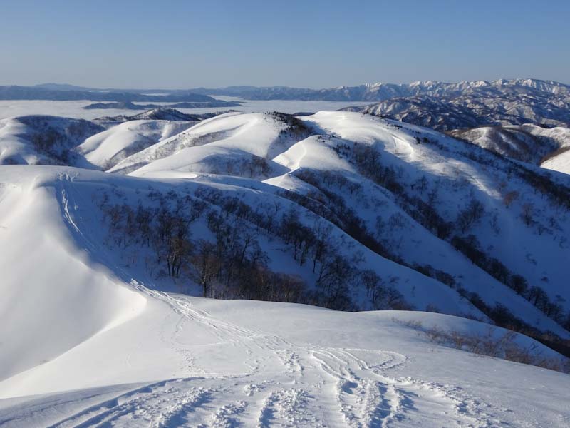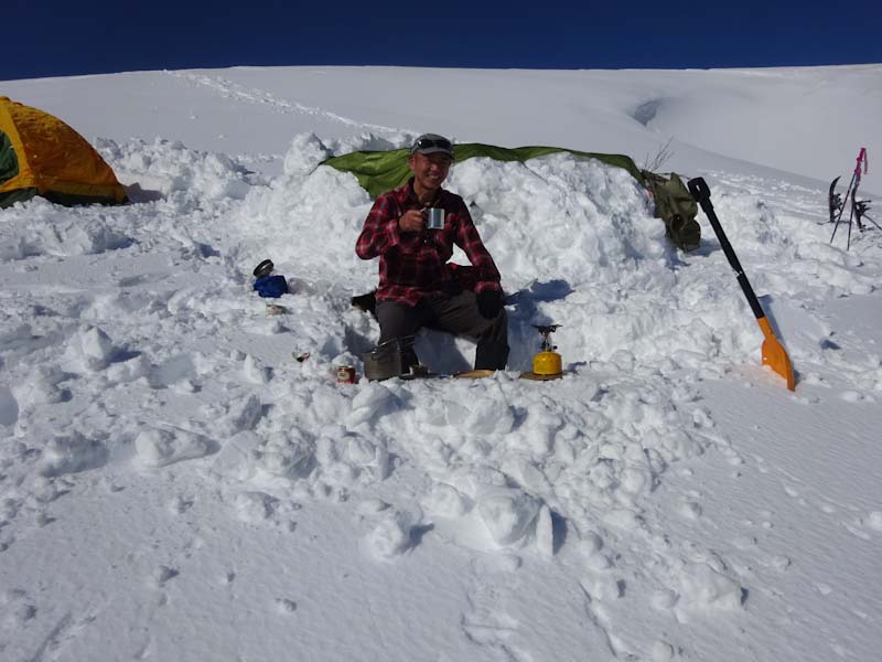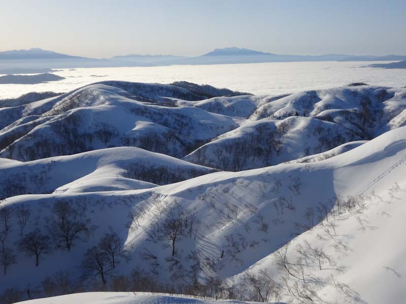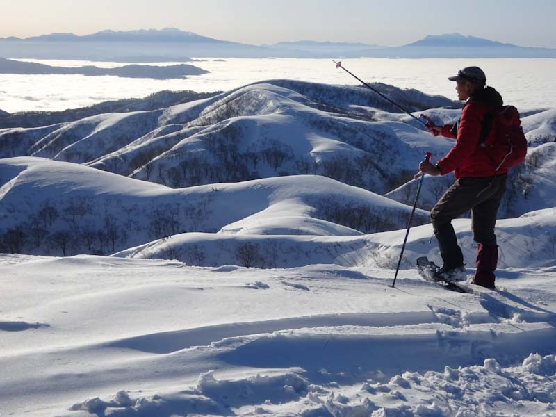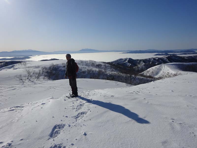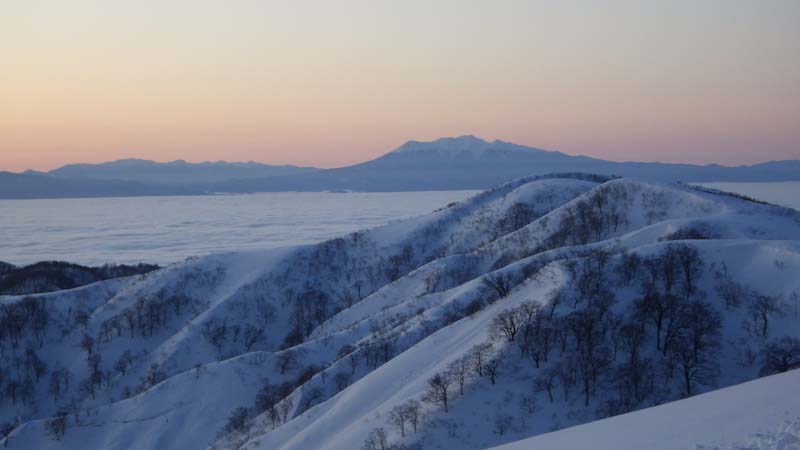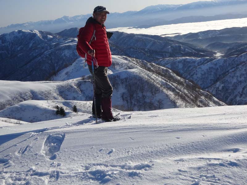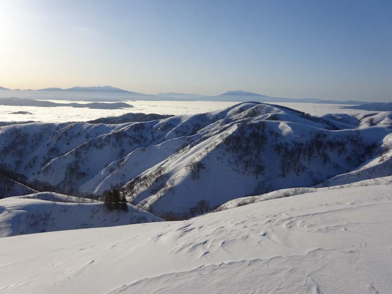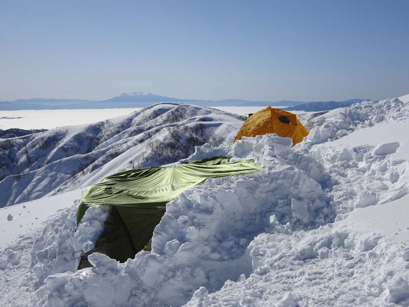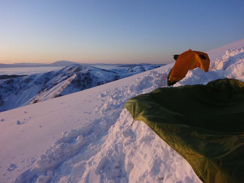 3/9 寝られないのならと午前5時過ぎから起きてしまった。一面雲海が広がっている。北アの山並みが、その上に鎮座している。剱岳も薬師岳も、槍穂高もである。ひと際目立っているのが、乗鞍岳と御嶽山である。シェルター(居酒屋こんごう)で、お湯を沸かしながら、まだかまだかと陽が昇って来るのを待つ。
