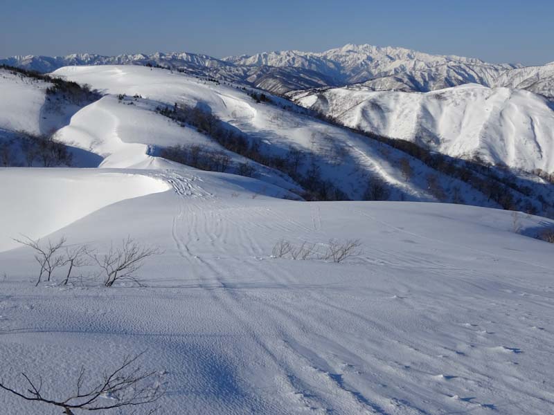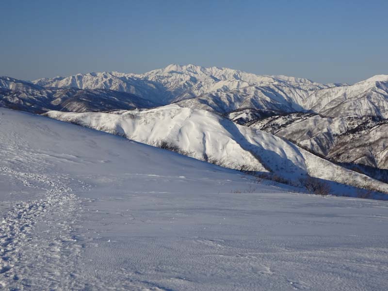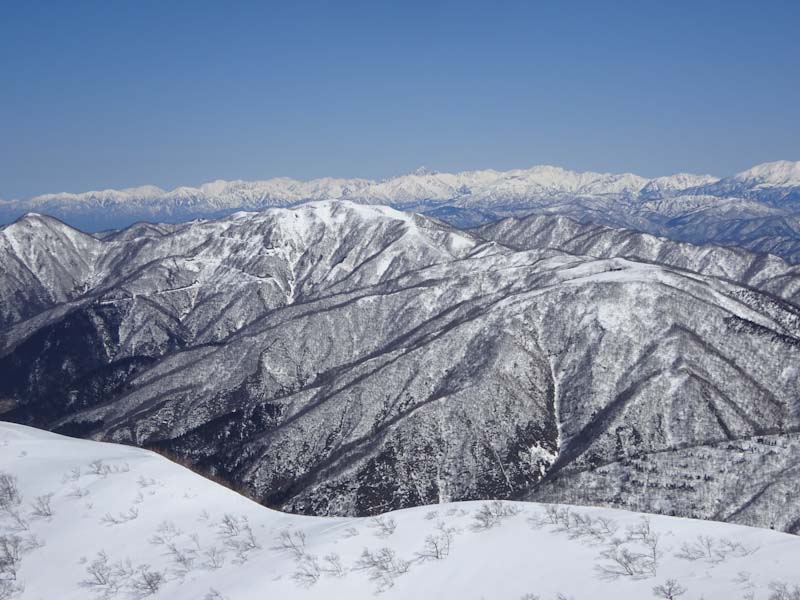 大笠山・笈ヶ岳方面の山々がくっきり。 |