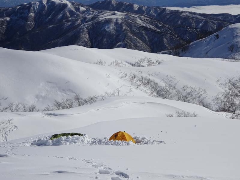 一人キャンプは、それなりにあるが、キャンプ場などで他の人達がいる。私は、「山ノ神」や山仲間とのキャンプが殆どである。山域に誰一人いないというのは、今回は何度目だろう。数年前、いや10年前くらいの猫又山キャンプ以来かもしれない。あれもこれもとアイテムが多いだけに担ぐのに苦労する。ちょっぴり我慢を覚えなければなるまい。
