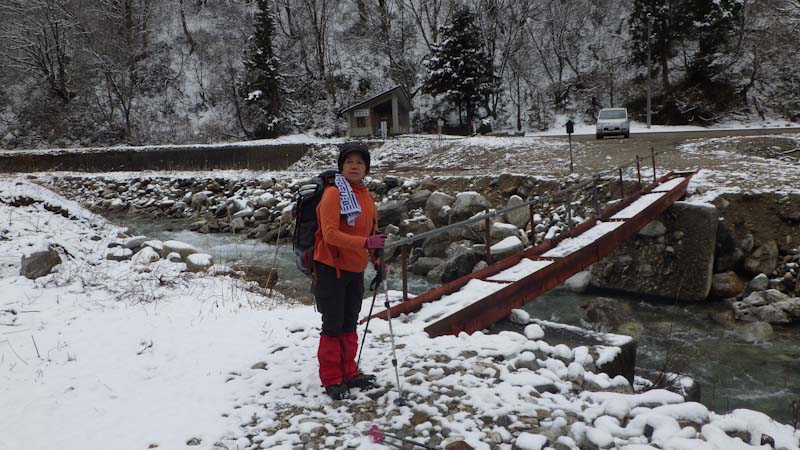 | 栃谷登山口・百瀬川を渡ります。 |